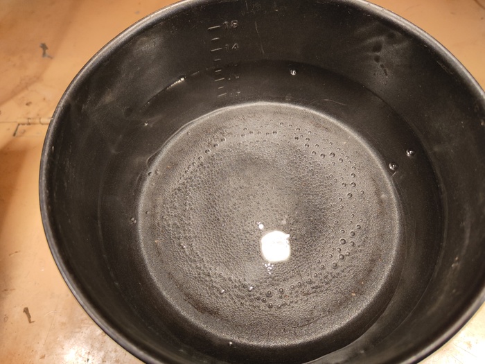 1. Родная кастрюля показала время 3:23. С крышкой ещё быстрее. Добавление помехи в виде вентилятора от компьютера сбоку (отдельный тест) на результат не повлияло (разница в пределах погрешности). Кипение начинается на краях дна в точках приварки теплообменника.