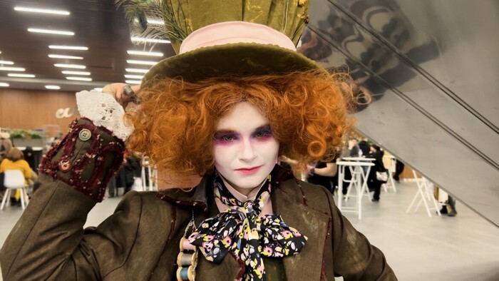 Короче, начнём с косплеев. Как я поняла, вообще кто угодно мог придти в костюме, была и программа косплеерская, они прям на сцену выходили, показ, все дела. А некоторые ребята были привязаны к месту или сами по фану пришли в костюме.