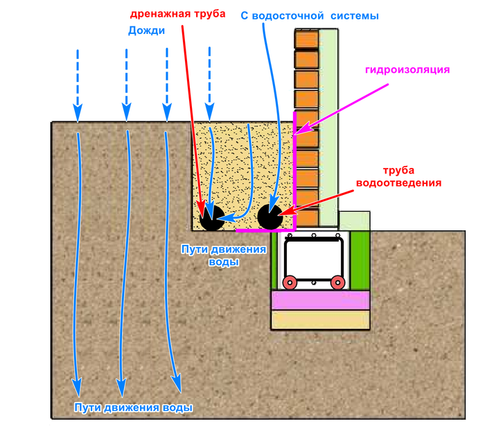 3. Вода обязательно пойдёт под фундамент. Вода дырочку найдёт, дренаж сделан не правильно, и.т.д.