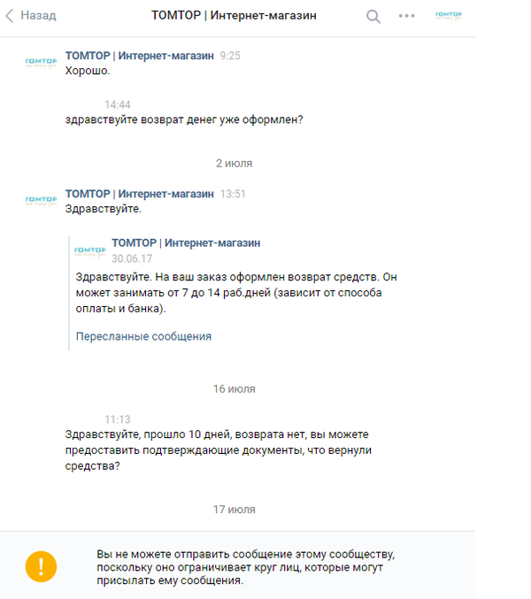 первого февраля они обещали вернуть средства за пять дней. Не забыв напомнить что если товар все таки придет то надо его оплатить.