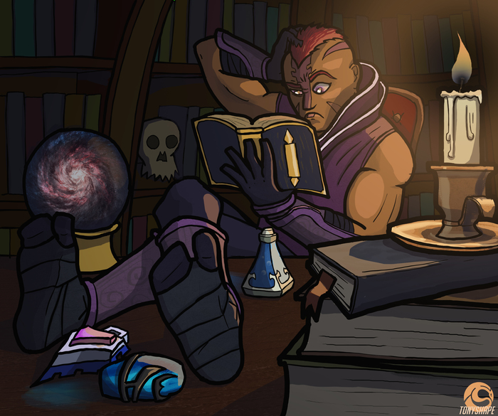 Ну и ещё одна работка в "более сложном стиле". В этот раз уже сам попотел над фоном и деталями, в отличии от предыдущей иллюстрации, хотя шутка изъезжена)