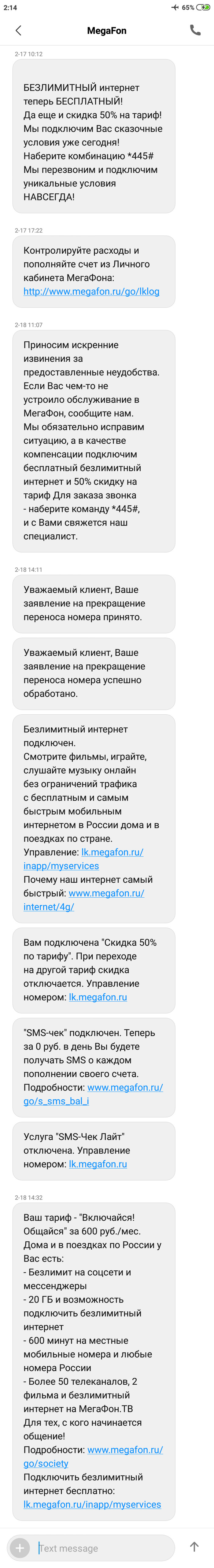 Помимо всего этого, я стал получать бестолковый SMS-спам от MCHS и ещё с какого-то короткого номера мегафона со всякими розыгрышами и футболом. Люди советуют просто отключать уведомления, однако в таком случае спам всё равно будут отображаться в количестве новых сообщений.